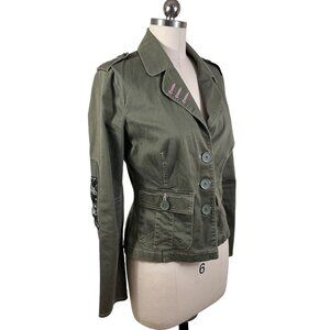 Plugg Y2K Blazer Womens Medium Green Military Utility Patch Sleeve 90s Grunge