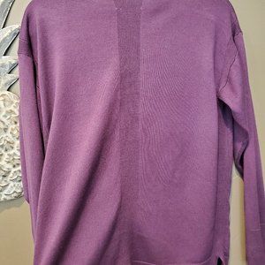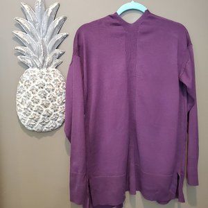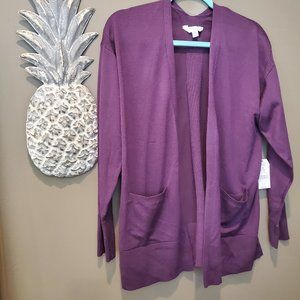 Super cute plum cardigan. It is SO soft! Perfect for transitioning into fall and winter. There's a small snag (pictured.) The item is new.
