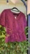 Plum colored faux wrap blouse. Small snap closure pictured. Gathered waist. Excellent condition. No snags or stains. Elastic sleeves. Plum embossed fabric.