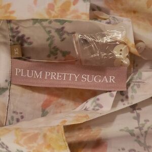 Plum Pretty Sugar Cotton Night Shirt NWOT Size XS Off-white with yellow, pink, coral, green and lavender floral pattern Spread collar Split hem Button front Button cuffs or can be worn as roll tab sleeves 100% cotton Measurements Pit to pit 18 inches Length 34 inches Smoke-free home, new without tags, never worn
