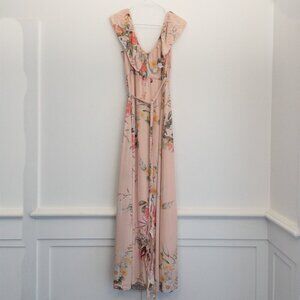 Plum Pretty Sugar Maxi Wrap Dress M/L Blush Floral Ruffle Rayon Boho Chic