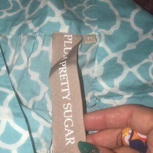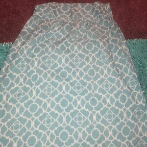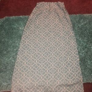 Long blue and white pretty skirt that’s made of cotton. The length is 41” and the waist is 26”. Please go by the measurements for sizing