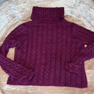Plum Purple Heavyweight Cable-knit Turtleneck Sweater, Size XL