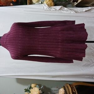 🍇 Plum Ribbed Sweater Dress Flared Hem Long Sleeve Turtleneck Soft Knit