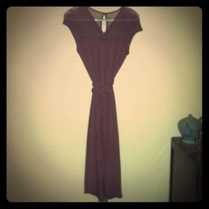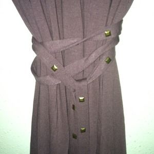 From office to night out on the town. Sheer top plum colored dress with studded belt.