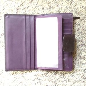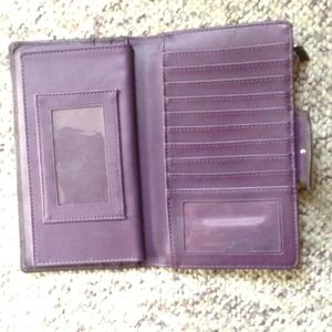 NWOT plum colored wallet with zipper coin slot, many credit card slots, DL slot, check book slot and other pockets to keep recites or to hide money from yourself for that rainy day ;)