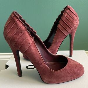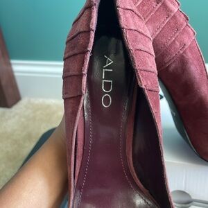 These plum colored, suede heels from Aldo have a cute pleated detail in the heel. Easy and comfortable to walk in.
