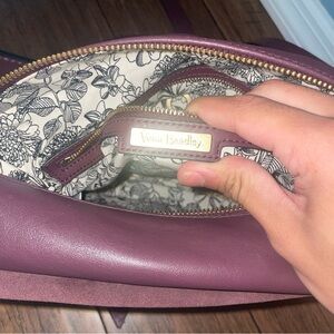 Plum leather suede satchel messenger saddle bag Vera Bradley crossbody purse