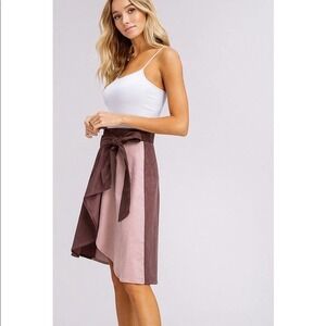 Plum/Blush Corduroy Color Block Wrap Skirt