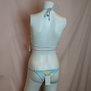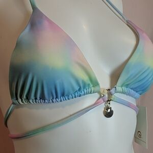 Plumeria Ariel Unicorn bikini. New with tags. Tie dye print. Seashell pendant detail. Made of 80% Polyamide, 20% Elastane
