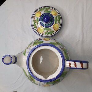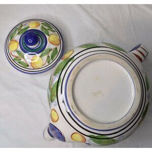 Plums Harvest LemonsTeapot Ceramic Vibrant Colors Hand painted 2000 Italy Vtg 6"