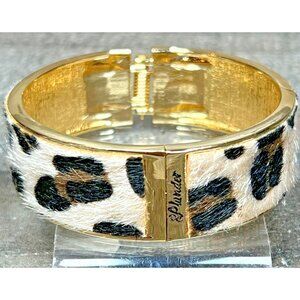 Plunder Bangle Bracelet 5.5 Wrist Jewelry Cheetah Leopard Gold Hinged Cuff. Brand new and comes with box and bag. Detail pictures are attached. Sold as is as pictured in the listing.