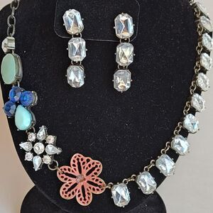 Plunder Crystal Statement Necklace & Earrings Set Floral Blue Green Pink Briolette