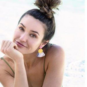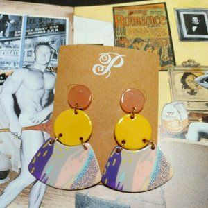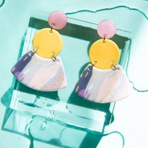 Brighten your summer look with these colorful acrylic earrings. 3" drop