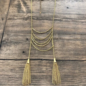 Plunder Gold Tone Double Tassel Long Necklace Ladder Style Fashion Jewelry