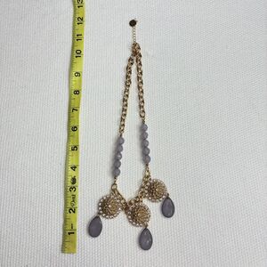 Plunder Gold Tone Purple Beaded Tan Floral Crystal Statement Necklace Women’s