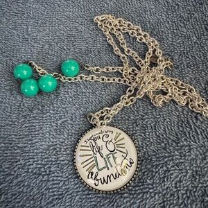 Plunder I have come to bring you life & abundant Silver and Green long necklace