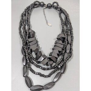 Plunder Jewelry Black Bead Chunky Layered Statement Bib Necklace Boho 28"