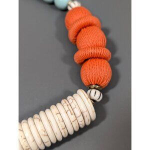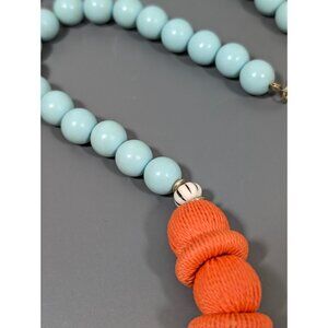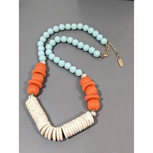 Plunder Jewelry Blue Orange Chunky Beaded Statement Necklace Boho Coastal 30 in
