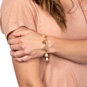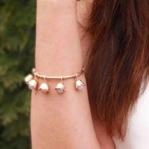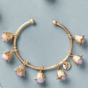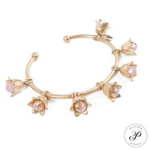 Gold bangle accented with gold flowers & pale pink gems 7.25”