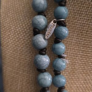 Plunder Long 62" Turquoise Blue Beaded Knotted Brown Cord Mabel Necklace