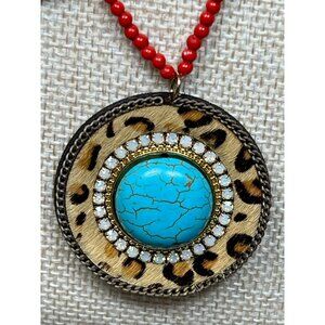 Plunder Necklace COLE - RED BEADED CHAIN,GOLD CIRCLES 33.5"-35.5" New in Box