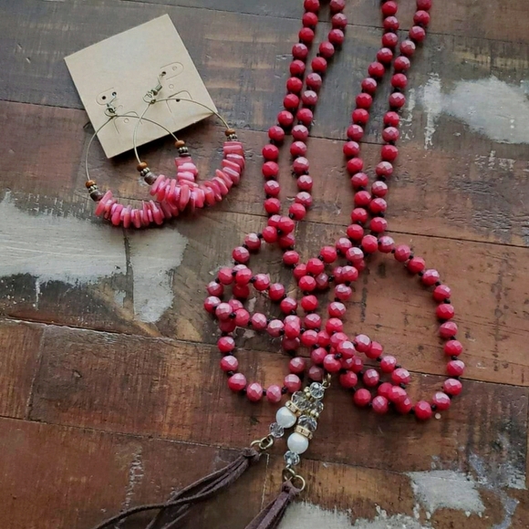 Necklace is an open end rope like style, so you can create any look! (Will upload ways soon) set includes pretty and fun matching earrings!