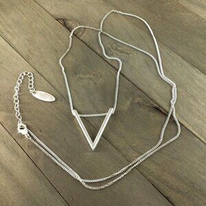 Plunder Roe Necklace Triangle Silver Tone Long Length Minimalist