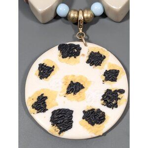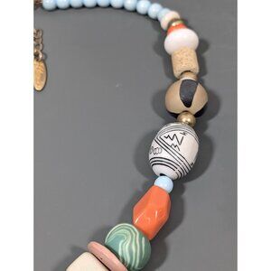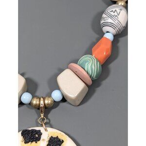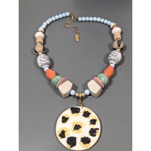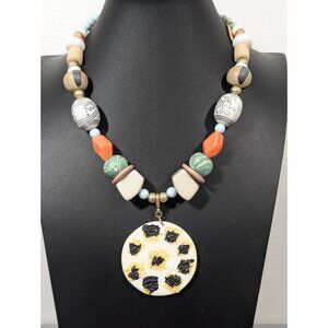 Plunder Unique Tribal Blue Orange Chunky Necklace Pendant Statement 23 in