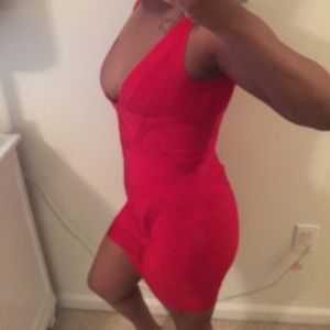 This beautiful bandage dress is perfect for birthdays, Valentine's Day, or any occasion that requires a show stopping dress! Dress has been worn once, may see a few loose threads but it’s in great condition.