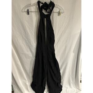 Anthro Black Plunging Jumpsuit Womens XS Solid Halter Neck Backless Wide Leg NWT