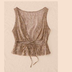 Plunging Neck Tie Front Ditsy Floral Peplum Top