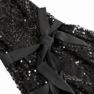 Plunging V-Neck Sequin Wrap Belted Maxi Dress