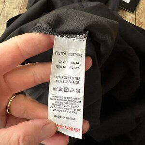 This chic black midi dress, crafted by PrettyLittleThing, features a stylish one-shoulder design. Its woven fabric enhances the elegant drape and fit, offering a sophisticated look suitable for various formal settings. The brand's attention to detail ensures a flattering silhouette for those seeking both comfort and style.
