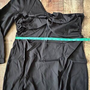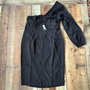 Plus Black Woven One Shoulder Midi Dress Size 16 PrettyLittleThing