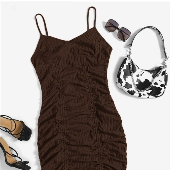 Plus Brown Drawstring Ruched Dress