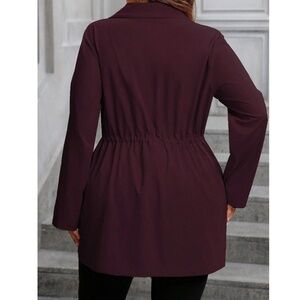 Plus Burgundy Wide Collar Drawstring Lightweight Jacket Coat