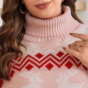 Plus Christmas Holiday Reindeer Snowflake Print Oversized Sweater