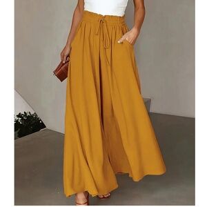 Plus Classic Paper bag High Waisted Pockets Wide leg pants