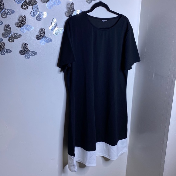 Gently Loved Scoop Neck Hits just below the knee Can possibly fit up to a 4X Polyester 95% Spandex 5%