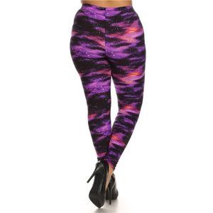 Purple Multi Galaxy Graphic Print Leggings Pattern Print Butter Soft Peach Skin print full leggings. High Waist with 1" Wide elastic waistband. Very soft. Great to wear dressed up with tunics, heels, boots, or casual with tennis shoes. New in package. Please see measurements for best fit. Please ask any questions. Thank you for shopping with Curvy Posh!