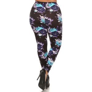 (Plus) Curvy Black Teal Navy Floral Pattern Print Leggings