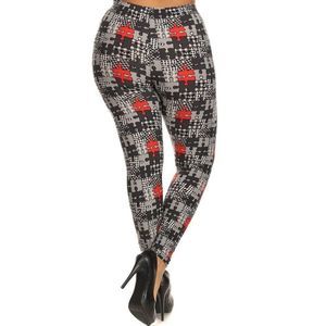 (Plus) Curvy Black White Red Puzzle Pattern Print Leggings