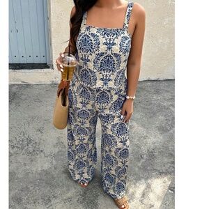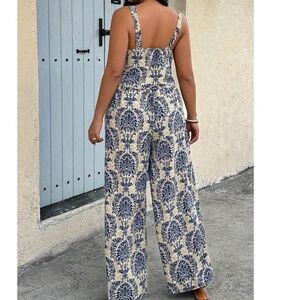 Plus Damask Print Stretchy Waist Wide leg Pants Cami Top Set