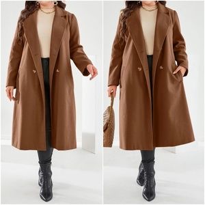 Plus Double Breasted Button up Belted Jacket Coat