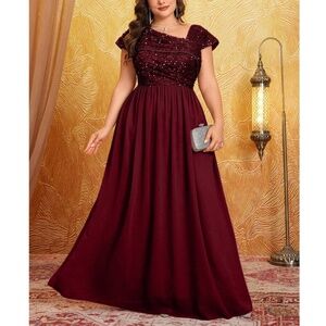 Plus Dusty Pink Sequin Flowy High Waisted Party Formal Wedding Dress