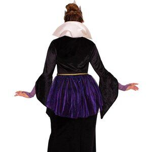 Be the fairest of them all in the 4 PC Evil Queen Costume. Inspired by the classic fairytale, this enchanting look features a velvet brocade gown with a dramatic high slit and shimmering iridescent overlay, paired with a regal shrug detailed with a jeweled closure and elegant gauntlet sleeves. The gold rope belt and pointed crown complete your royal transformation. Package Includes: dress, belt, shrug, crown.