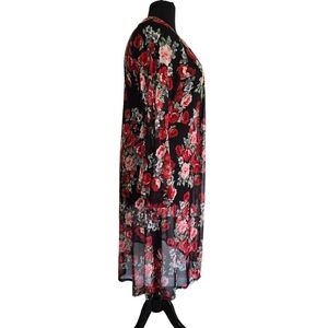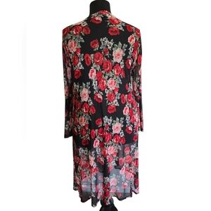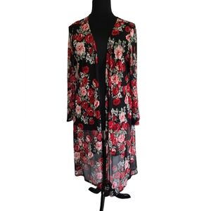 Plus Floral Duster Objex Jacket Vest Rose Red Black Mesh Romantic Bell 2X