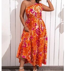 Plus Floral Print One Shoulder Cottagecore Maxi Dress