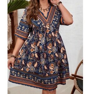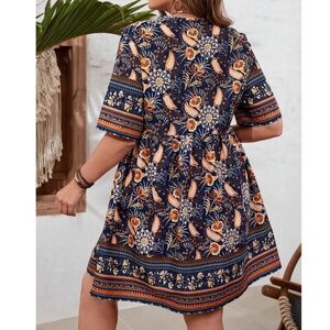 Plus Floral Print V neck Short Sleeve Mini Dress